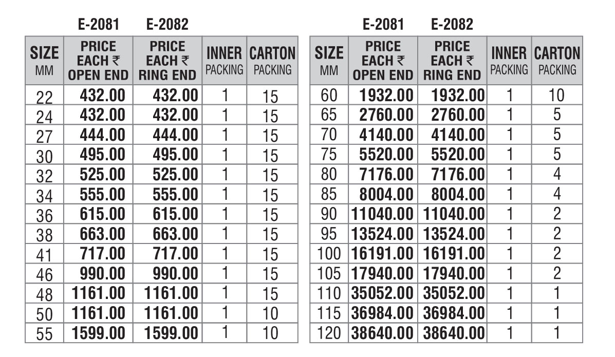 Upgrade your industrial toolkit with Eastman Cast & Forge Ltd Slogging Spanners – Open End & Ring End – CRV, designed for precision, strength, and reliability. Manufactured from Chrome Vanadium Steel (CRV), these spanners are engineered to deliver maximum torque and withstand heavy-duty operations in mechanical, construction, and automotive industries.
