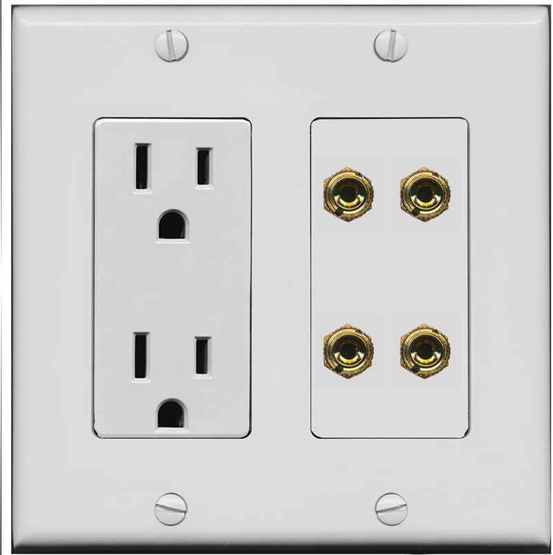 | Included Components | 15 Amp/125V Power Outlet, 2 Gang Frame, 4 x Female Jacks (Assembled), Screws |