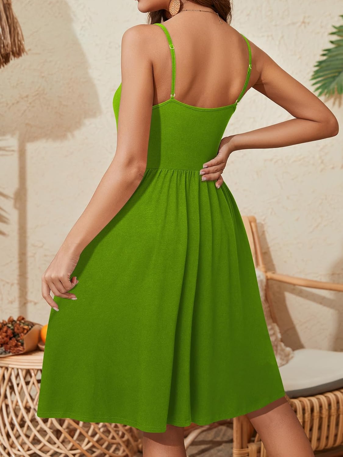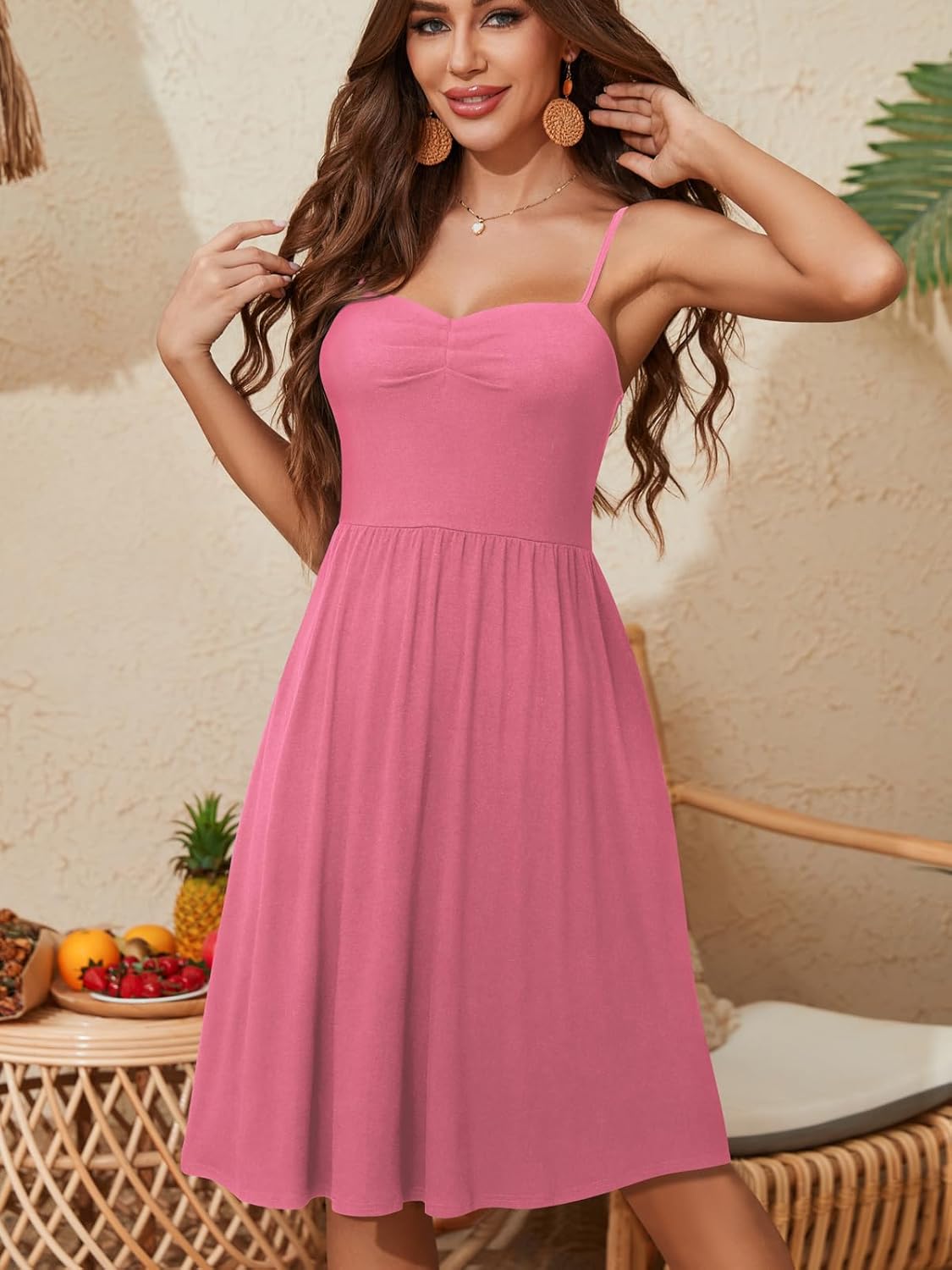 • 【ADJUSTABLE SPAGHETTI STRAPS DESIGN 】: Women fit and flare adjustable spaghetti straps aline casual summer beach dresses 2025 gives you that “snatched” look. The spaghetti straps you can adjustable to your comfort - which is amazing. Fits great around your shoulders. Flattering and classy design, it is a necessity for every wardrobe.