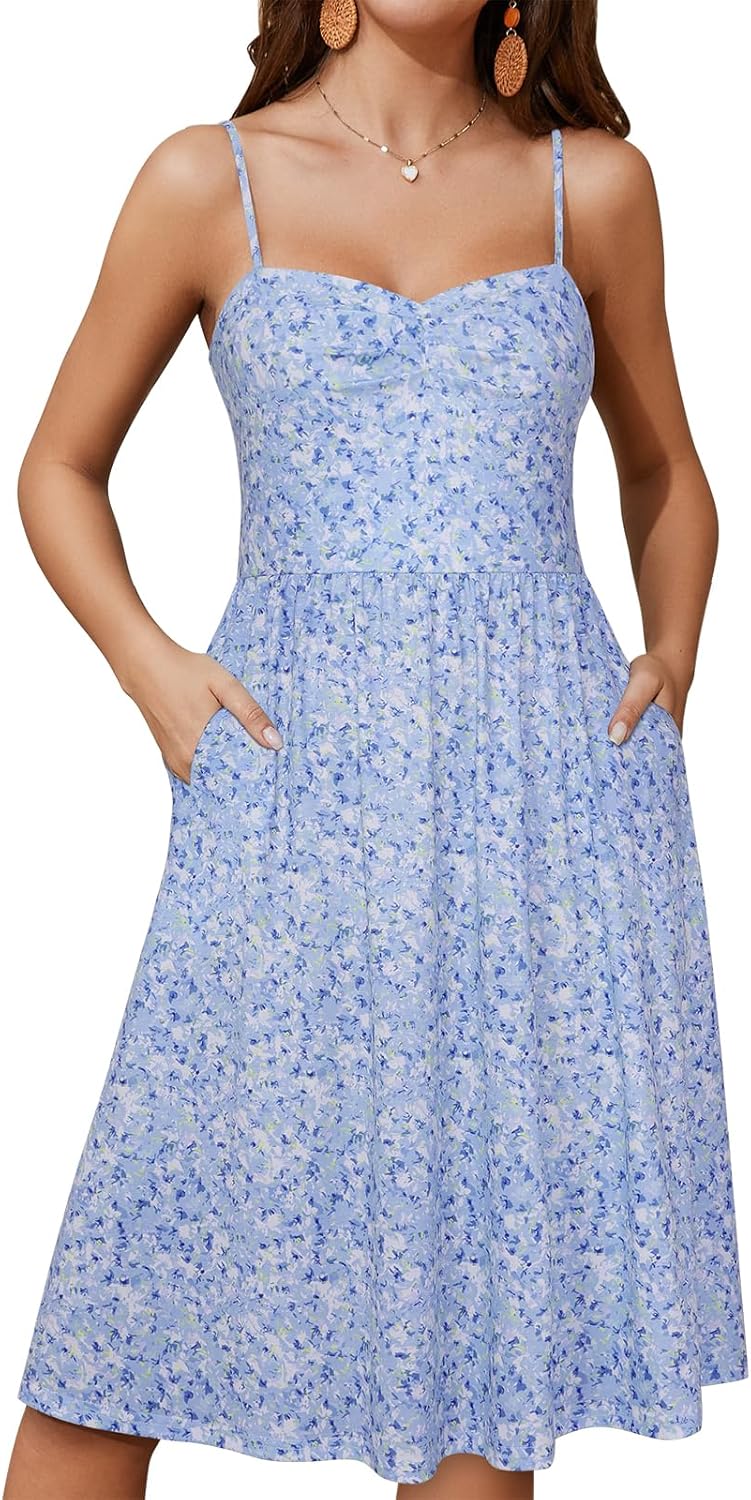 Sundresses for Women 2025 with Pockets Sleeveless Spaghetti Strap Aline Summer Dresses