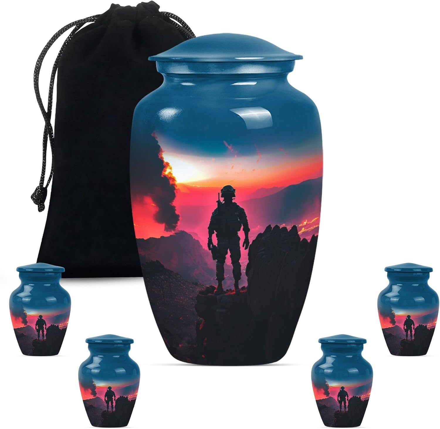 MILITARY FOR HUMAN ASHES/ MINI KEEPSAKE URN Urns serve as a timeless tribute to loved ones, reflecting the unique lives they lived.Our collection offers a diverse range of urns, available in various sizes and shapes to suit different preferences and needs. We are particularly proud of our meticulously crafted selection, which includes keepsake urns measuring 3 inches, perfect for holding a small, personal remembrance.These keepsake urns come in convenient options, either as a single pack or in a pack of four, allowing families to share and cherish these memories. For those seeking a more traditional size, we offer large urns at 10 inches, which can accommodate a full set of ashes.Every urn in our collection is designed with care and attention to detail, ensuring that each piece is not only a receptacle for ashes but also a beautiful work of art. Our urns come in multiple designs, each with its own distinctive style, ensuring that you can find the perfect expression of love and remembrance for your beloved. We take great pride in offering these choices, helping you honor your loved one's memory in the most fitting way.