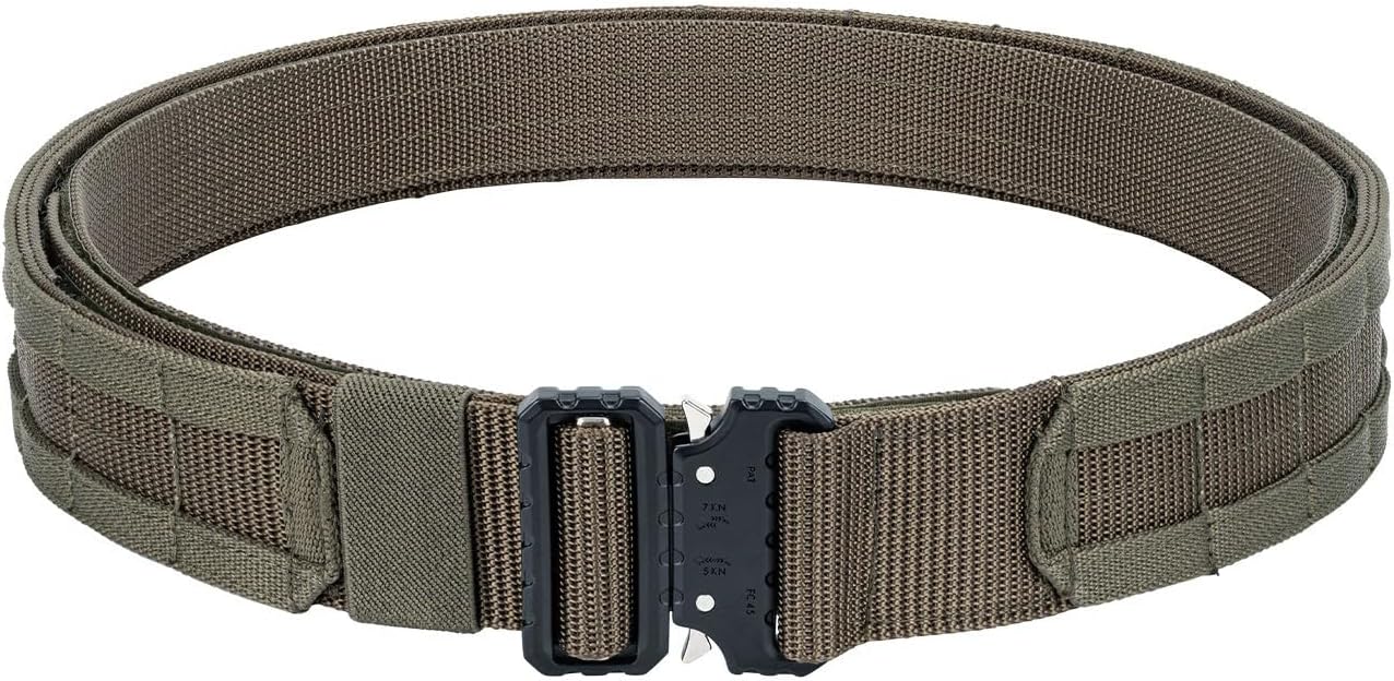 FEATURES Minimalist design Premium materials and workmanship 1.75″ dual layer load bearing belt system Compatible with standard/MOLLE gear No more belt keepers Outer Belt 1.75″ double layer nylon webbing MOLLE loops on exterior to mount compatible MOLLE gear 1.75″ quick release metal buckle 1.5″ hook velcro inner lining Adjustment end secured by hook & loop Standard Overlap Inner Belt(Low Profile EDC/Inner Belt) 1.5″ durable nylon webbing 1.5″ loop velcro outer lining Simple buckle-free design Tapered end for easy threading through belt loops Compatible with nearly all belt loops Functional as EDC belt when not being used as inner belt