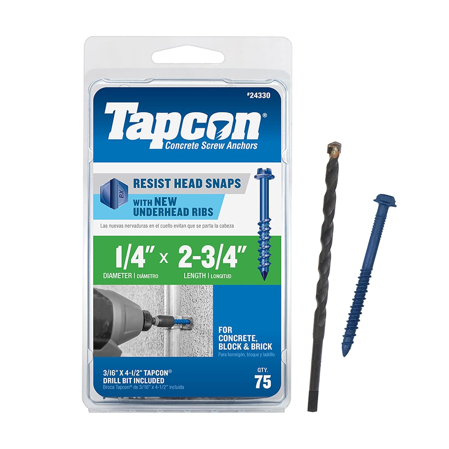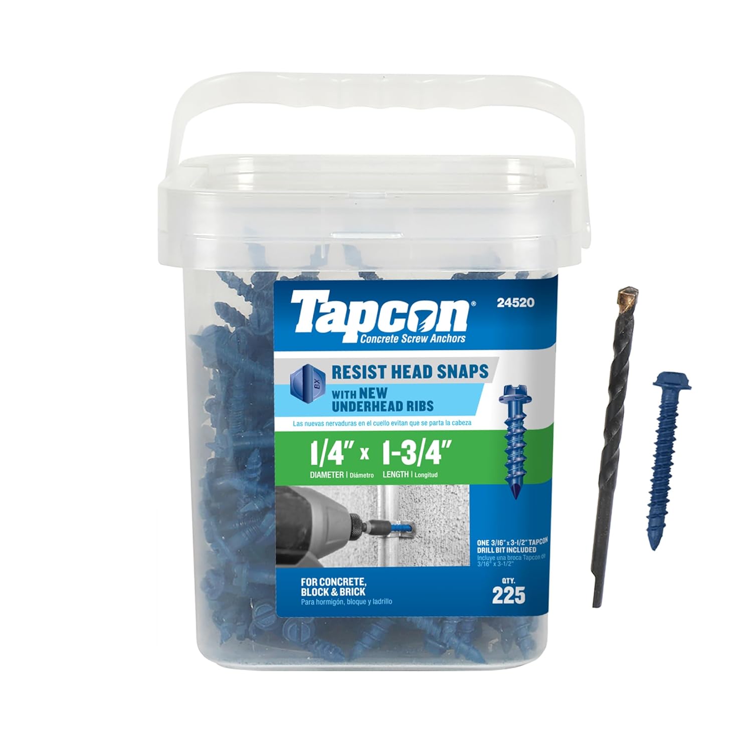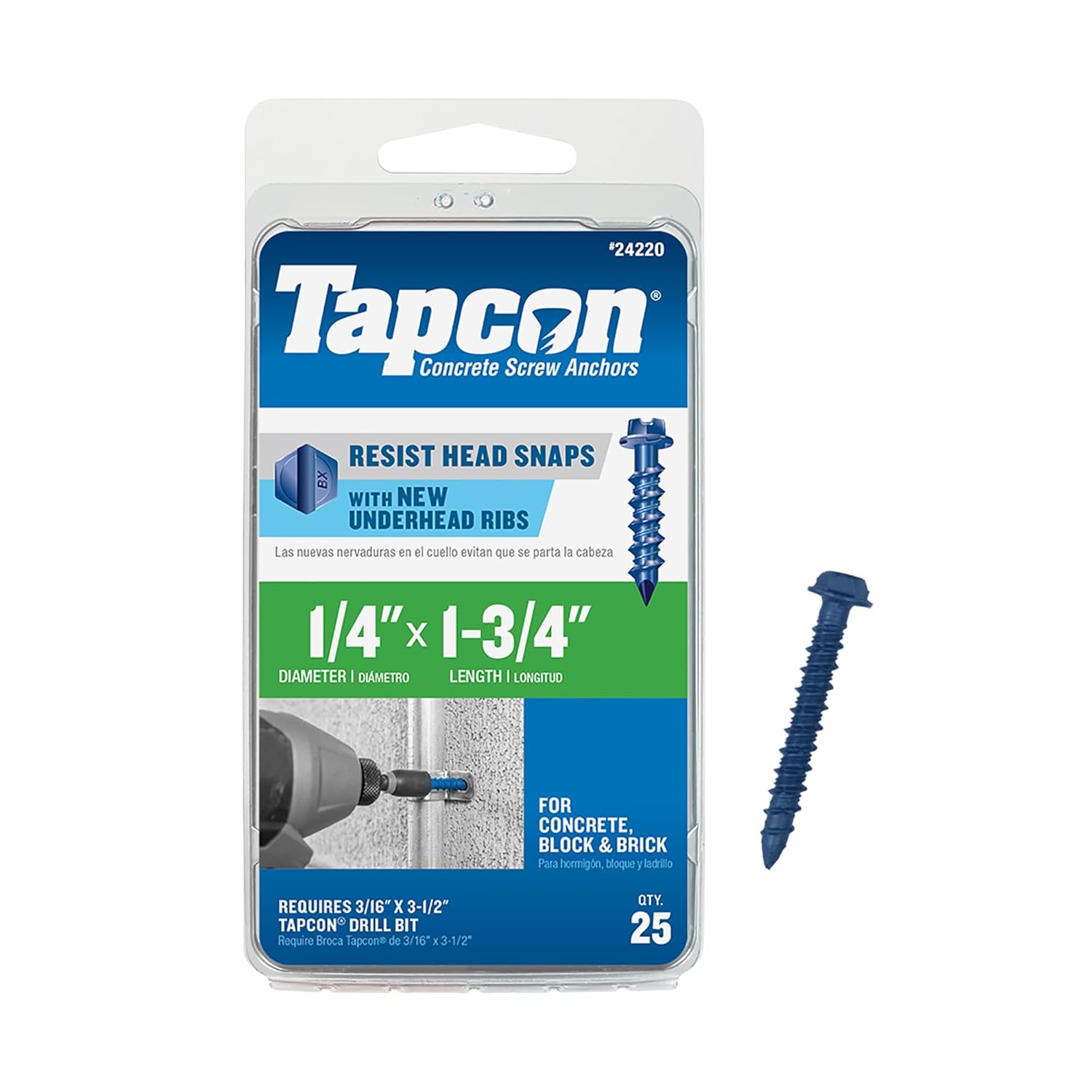 Tapcon concrete screw anchors deliver the ease of use, superior hold, and unparalleled performance that professionals demand. With ICC-ES recognition for use in concrete and masonry (ESR-2202 & ESR-1671), these anchors meet building codes and engineering standards for structural applications. The hex head, with under-head ribs, resists head snaps and spin outs, providing superior holding strength and stability. The innovative WERCS threadform allows easy installation across a variety of masonry substrates, such as concrete, brick, block, and stone. Making these anchors versatile for diverse applications. The Climaseal™ coating provides corrosion resistance and long-lasting performance. Available in multiple head styles, star head for furring strips, wood framing, and window frames and hex head for electrical boxes and structural work. Tapcon concrete screw anchors deliver the reliability and performance professionals trust on every job.